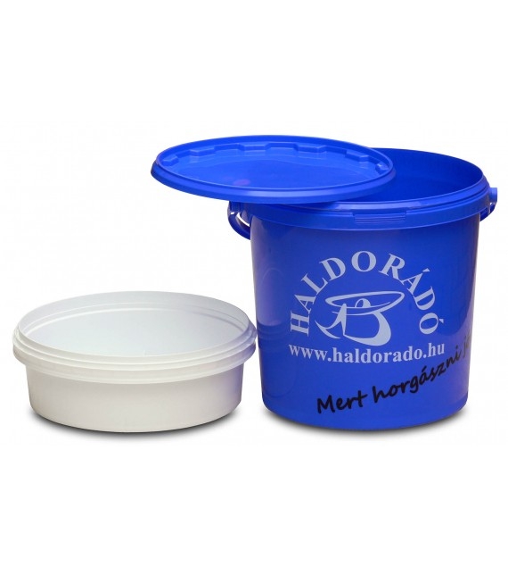 Praktikus és hasznos a Haldorádó kerek vödör szettje, amely egy 10 literes, rugalmas anyagból készült, fedeles vödörből és egy ebbe passzoló méretű 4 literes tálkából áll (falmagassága 9 cm). A tökéletesen záródó, műanyag fedővel ellátott vödör jó szolgálatot tehet, amikor az előre bekevert etetőanyagot szeretnénk megvédeni a kiszáradástól és az értékes aromák elpárolgásától. Ha csalihalat kell autóban szállítani, akkor se feledkezzünk meg róla. Ebből garantáltan nem lötyög ki a víz! A tálkába pedig akár élő anyagot is tehetünk, de akár a csalizásra szánt anyagokat is tárolhatjuk benne. Ez a vödör azoknak is jó választás lehet, akik már a standard méretű vödröket is nagynak találták, és a kisebb méretűeket részesítik előnyben. Ráadásul egyik gyártó palettáján sem található ilyen kis méretű vödörből fedeles és tálcás változat.